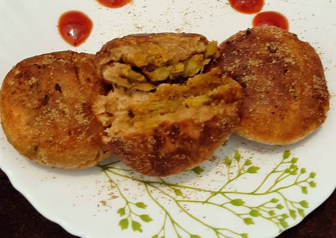 - Mix everything well and make small loyis of dough. Fill in the mixture and seal the edges of a dough.